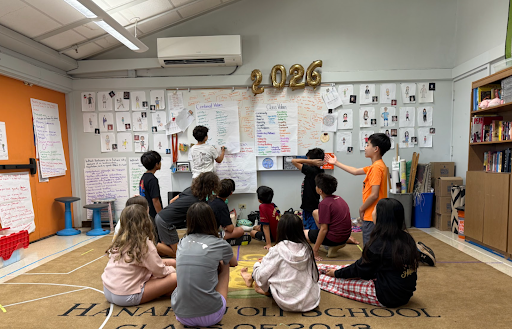 We also added an important missing piece: the concept of values. How do values inform our decisions? They are the guiding principles that shape the choices we make as individuals and as a group. At the start of the school year, students share their personal values with the class and then vote to select three class values. These values connect to the legacy they hope to leave behind before graduating from Hanahau‘oli and moving on to new schools.