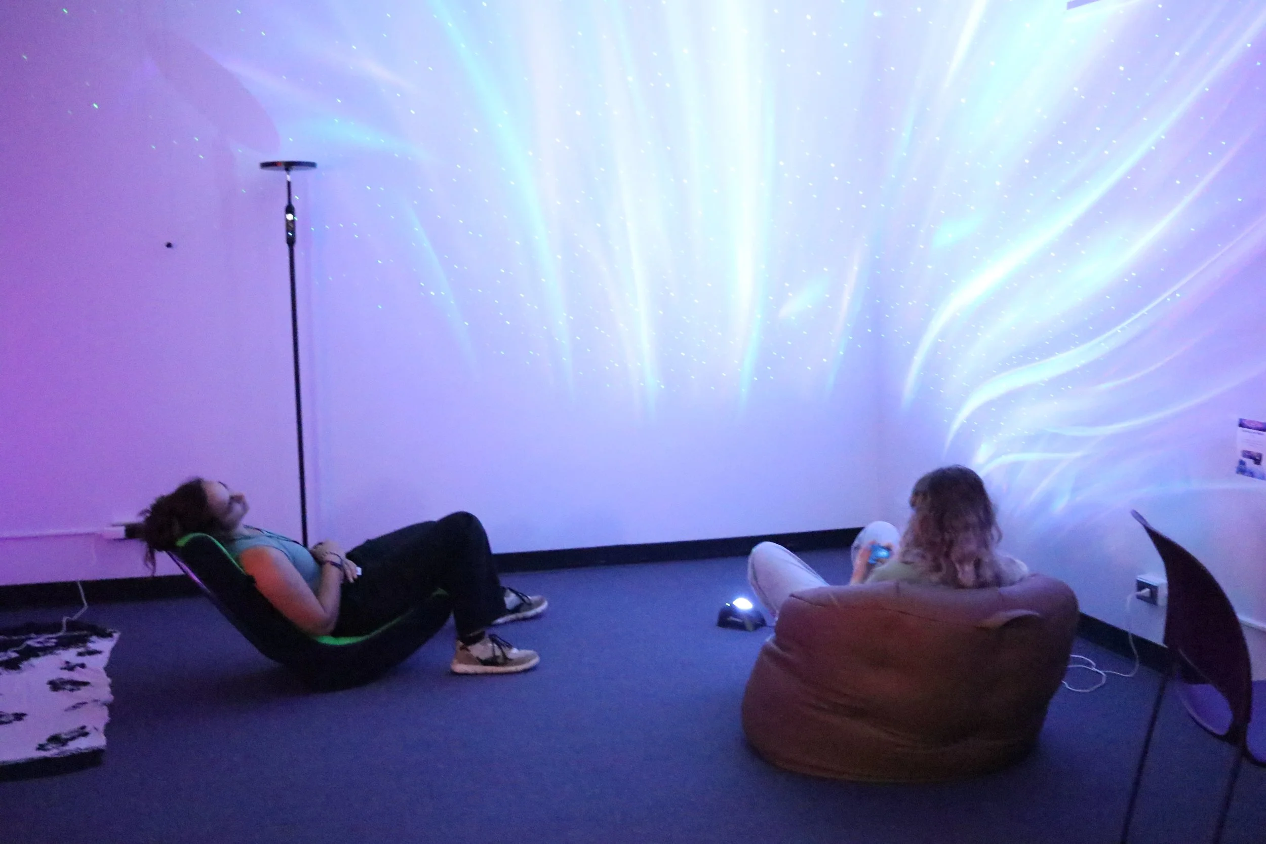 Students emphasized how the sensory room differed from the fast-paced, overstimulating, and often neurotypical campus environment. Stepping into the room creates a sense of calm. One student “immediately felt peaceful when entering,” while another highlighted “the low lighting and large space to move around and experience different items.” For college students navigating stress and anxiety, ADD/ADHD, or sensory processing challenges, the calm ambience was deeply appreciated:
