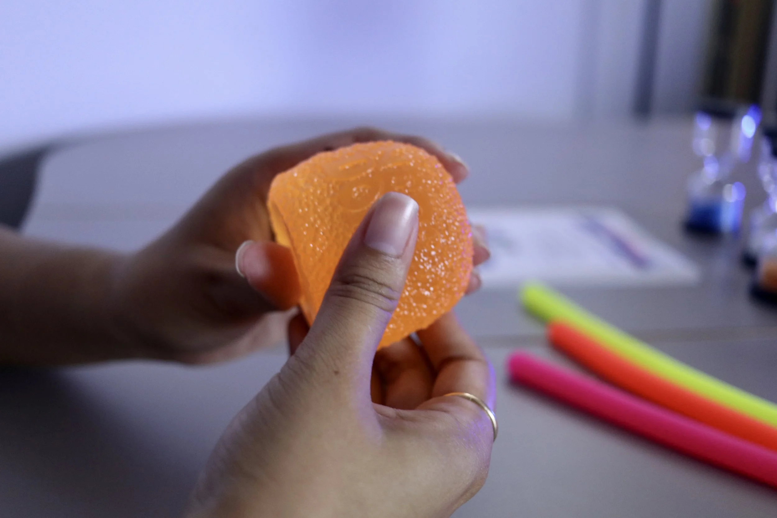 While some faculty initially worried that bringing sensory items in the classroom might distract from studying, learning about the research behind sensory integration shifted their assumptions. Understanding that sensory tools can improve one’s focus while relieving stress and anxiety reframed sensory play as a helpful resource that supports student learning and regulation.