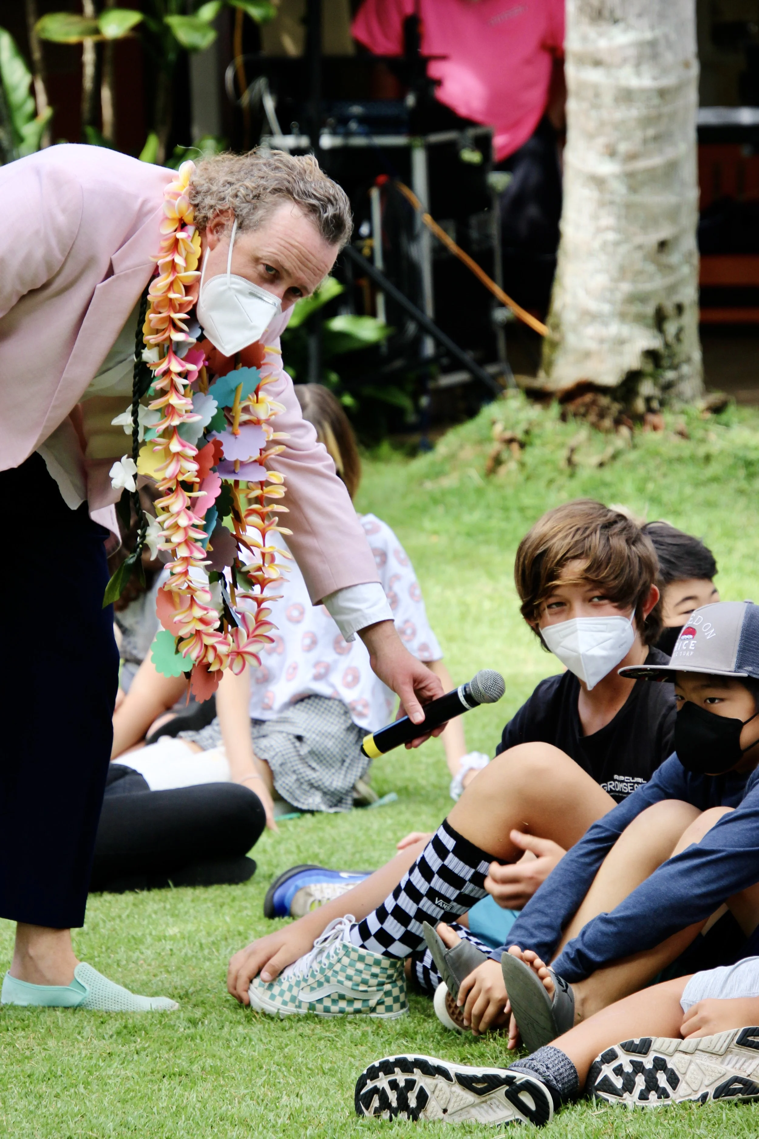 Mr. Brendan McCarthy, Scholar in Residence for the 2021-2022 SY interviews students at the “I Want to Know What Love Is” Hanahau‘oli School Film Festival, an initiative he developed as part of his year long residency. Read some of his reflections along with those of other Scholars in Residence on the Progressive Philosophy & Pedagogy Blog.
